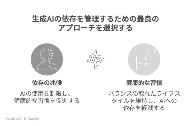生成AI依存を防ぐために、以下のような取り組みが有効です。