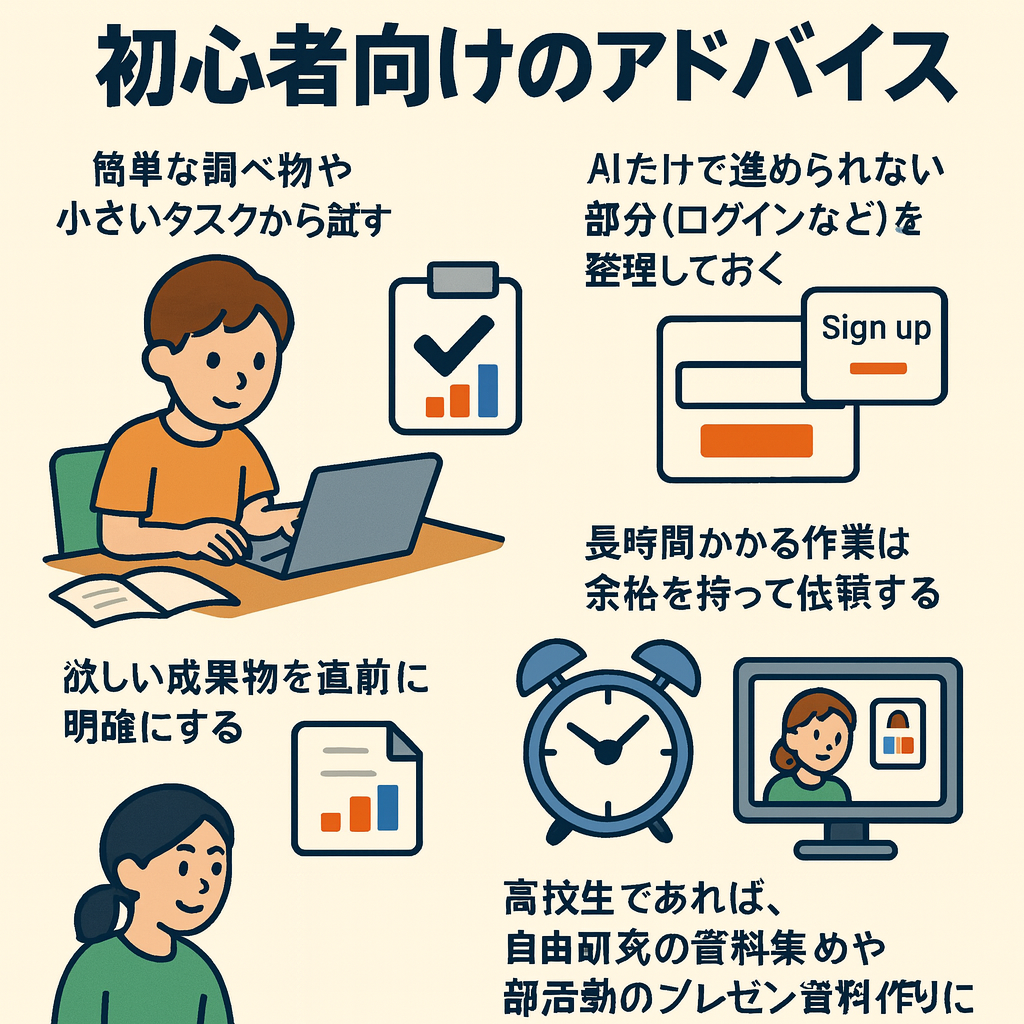 まずは簡単なタスクから試してみましょう。AIと一緒に作業を進める体験は、未来の学び方や働き方を考えるきっかけになります。