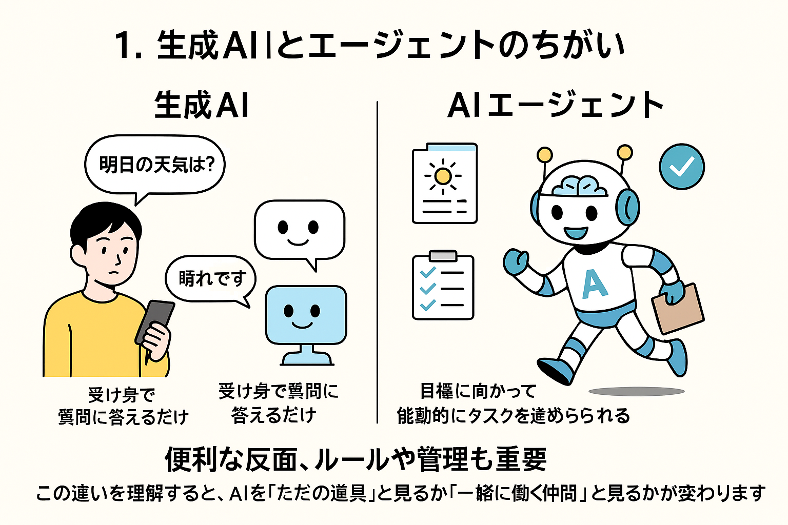 1. 生成AIとエージェントのちがい