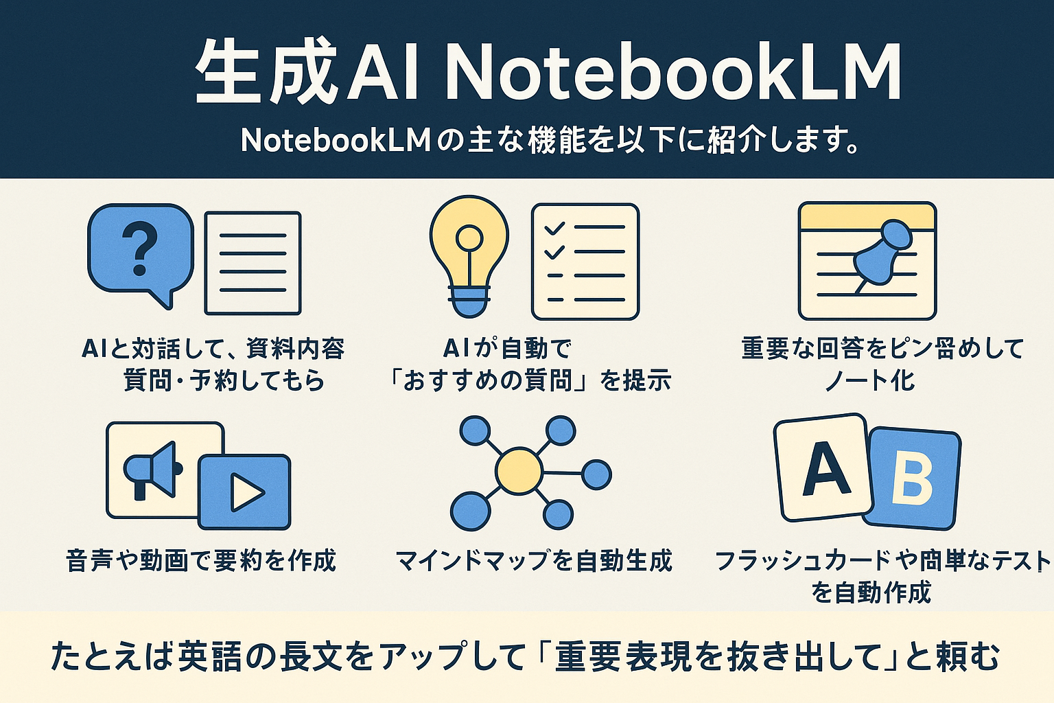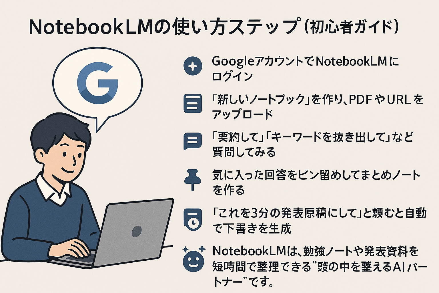 NotebookLMは、勉強ノートや発表資料を短時間で整理できる“頭の中を整えるAIパートナー”です。