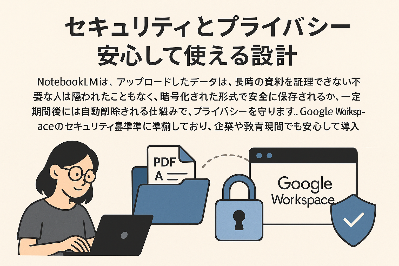 NotebookLMにアップロードしたデータは、GoogleのAI学習には使われません。他人に見られることもなく、暗号化された形式で安全に保存されます。さらに、一定期間後には自動削除される仕組みで、プライバシーを守ります。