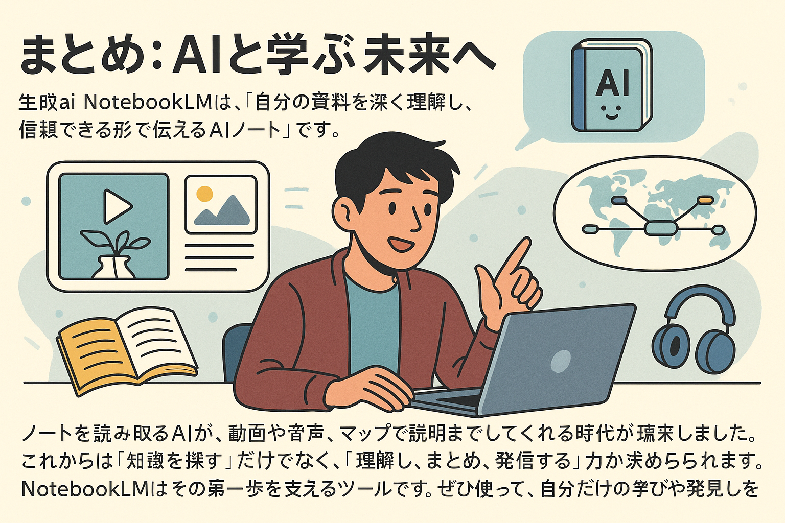 NotebookLMはその第一歩を支えるツールです。ぜひ使って、自分だけの学びや発見を体験してみましょう。