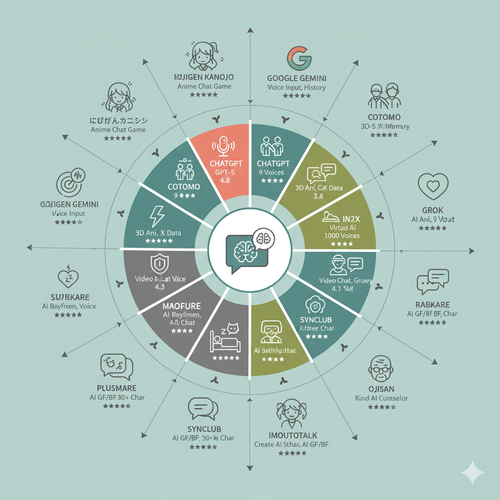 現在、様々な企業から個性豊かな生成AI話し相手サービスが提供されています。ここでは、主要なサービスを比較し、それぞれの特徴をまとめます。