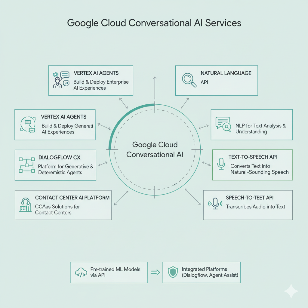 Google Cloudは、以下のような形で会話型AI技術を提供しており、それぞれが特定のニーズに対応しています。