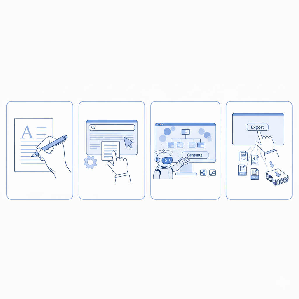 このツールの仕組みは、大規模言語モデル(LLM)がテキストの構造と意味を理解し、それを視覚的な要素にマッピングすることに基づいています。これにより、図解作成の専門知識がない人でも、誰でも簡単に高品質なビジュアルコンテンツを作成できるのです。