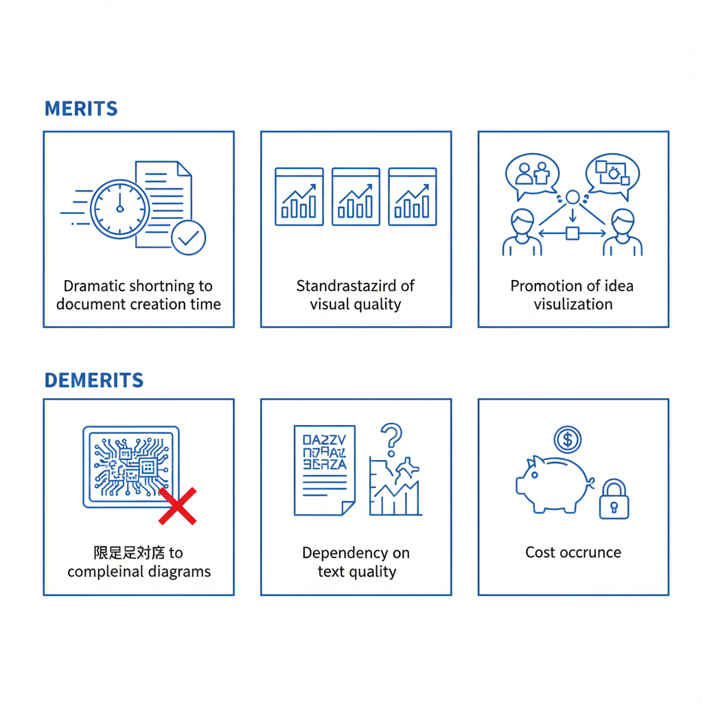 •非常に専門的で複雑な図解(例:特定の技術的な回路図など)の生成には限界がある場合があります。
