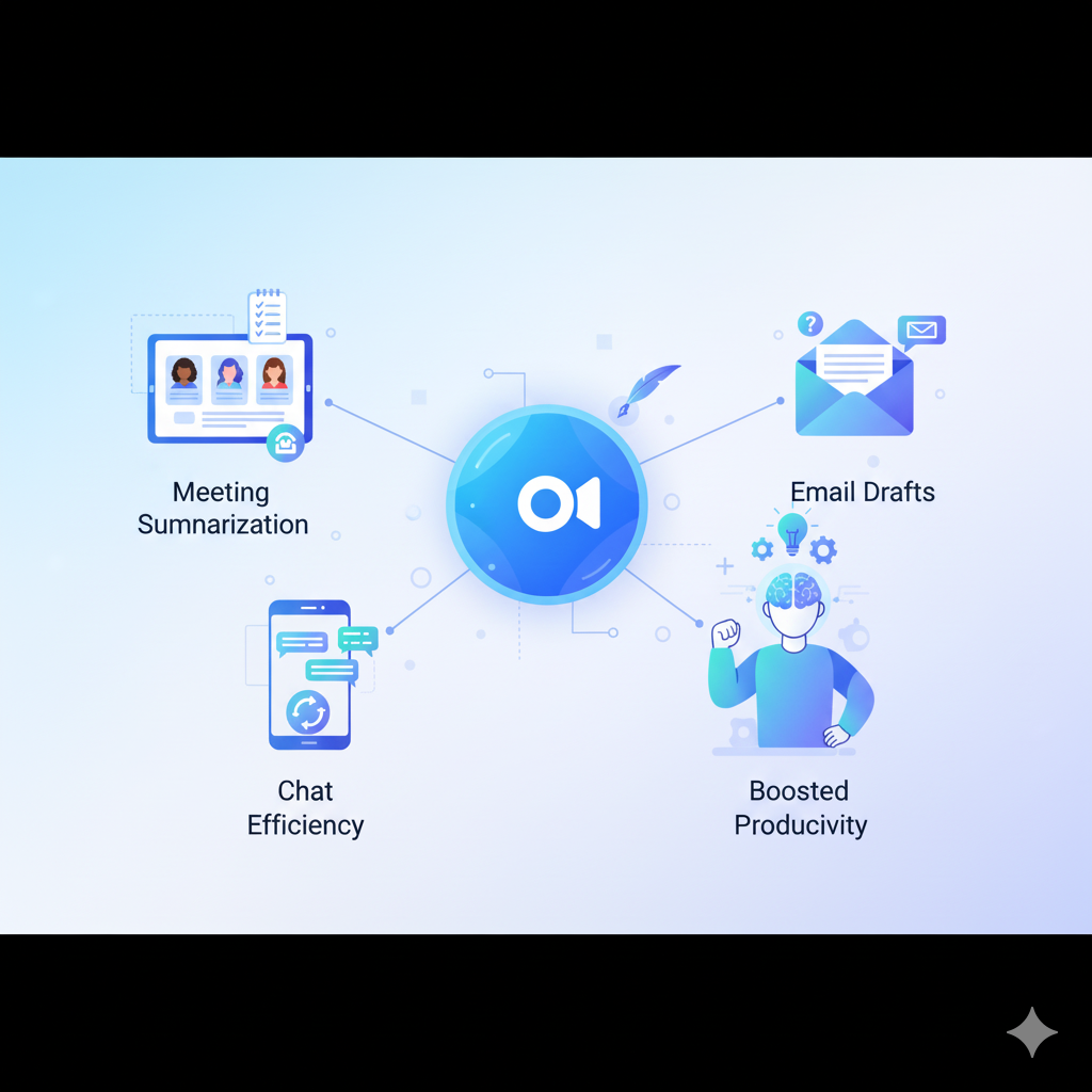 また、チャットやメールの作成においても、AIが文脈を理解し、適切な文章を提案してくれます。トーンの調整や文章の長さの変更も可能で、コミュニケーションの質を落とすことなく、迅速な対応を実現いたします。さらに、最新の3.0では、メモ作成とインサイトの抽出(My Notes, Agentic Retrieval)機能が強化され、会話やドキュメント全体から必要な情報を引き出し、パーソナライズされた形で提供してくれるようになります [1]。
